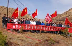 石拐区与包头日报社联合举办了“五当召祈福生态绿色基地”启动仪式,掀起了全区义务植树造林活动的新高潮。
