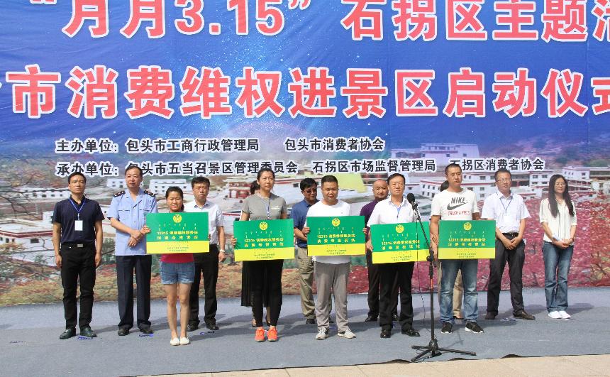 8月11日,由包头市工商局、包头市消费者协会主办,包头市五当召景区管理委员会、石拐区市场监督管理局、石拐区消费者协会协办的包头市“月月3·15”石拐区主题活动暨全市消费者维权进景区启动仪式在五当召景区广场举行。