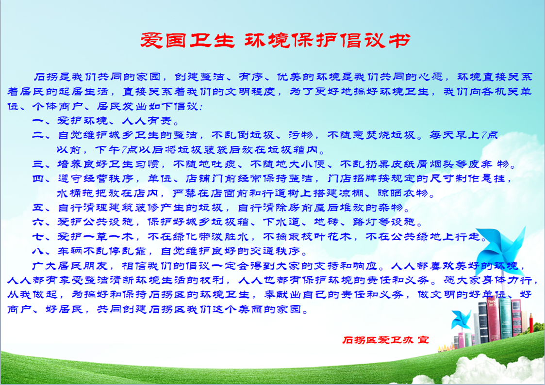 爱国卫生 环境保护倡议书