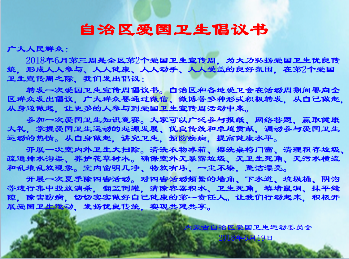 自治区爱国卫生倡议书